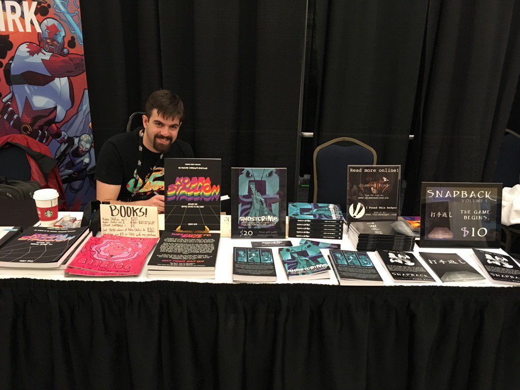 Still here on the 2nd floor with @FlyknifeComics at #halcon2016! Pumped to see fans from last year and new ones too
